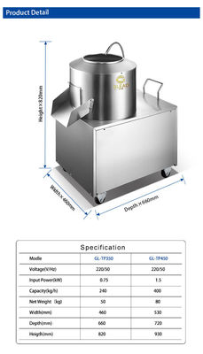 GL-TP450 поставляется с различными функциями, которые делают его идеальным выбором для быстрого и эффективного приготовления картофеля.Эта машина достаточно крепкая и прочная, чтобы справиться даже с самыми тяжелыми нагрузками.Корпус машины изготовлен из нержавеющей стали, что гарантирует безопасность и гигиеничность при приготовлении пищи.